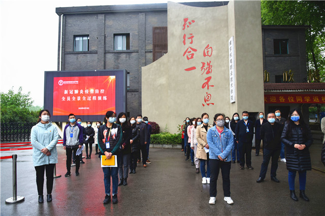 此次演练涵盖了学生报到、宿舍日常管理、网课直播授课、体育课授课、实训室授课、师生就餐、集中医学观察点7个场景及场景中可能发生的异常情况,全景模拟了学生返校后的日常生活、学习全过程。