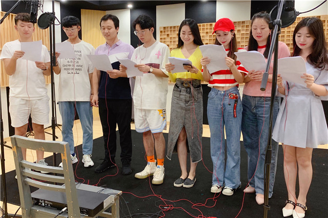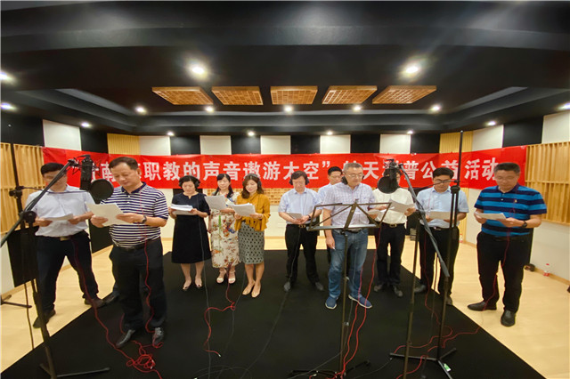 录音开始前参与领导们进行朗诵练习