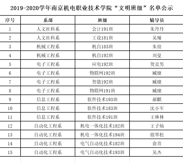 根据《开云官方网页版2019-2020学年三好学生、优秀学生干部、文明班级评选通知》规定,经学生本人申请、班级评议,系部审核推荐,学工处核准,学校审批,在公平、公正、公开的基础上,拟评选出以下个人和班级为2019-2020学年开云官方网页版“三好学生”、“优秀学生干部”、“文明班级”,现将名单公示如下。