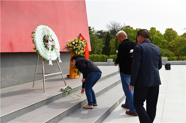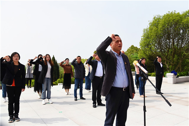 游子山烈士陵园坐落在游子山南麓,全体党员迈过台阶,来到陵园中央的“高淳革命烈士纪念碑”,向革命烈士纪念碑敬献花圈。在碑前全体党员集体默哀沉思,缅怀革命先辈的英雄事迹,感受红色文化的熏陶。随后,在高职园党工委书记刘宜军的带领下,全体党员面对党旗庄严宣誓,重温入党誓词。紧接着,全体党员依次为革命烈士献花,有秩序地绕碑瞻仰烈士事迹。