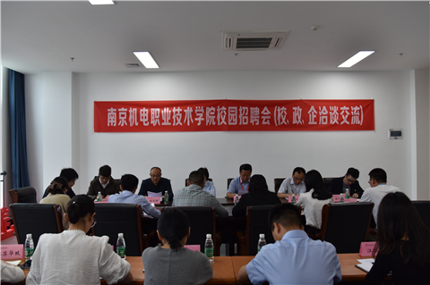 招聘会前,校领导在会议室与参会嘉宾们进行了深度交流。周庆礼代表学校对高职园和高淳人社局一直以来对学校的大力支持表示衷心感谢。交流会上周庆礼强调高校的发展需要紧密与当地的经济社会发展相结合,发挥地缘优势,主动融入社会经济发展的广阔市场,为地方经济社会发展提供科技、文化和人才支撑。周庆礼介绍了学校概况、办学理念、办学特色同时他强调学校注重学生专业素质的培养,组织开展多项创客活动,培养学生的创新思维,让学生“在学中玩,在玩中学”,切实增强学生在校的“体验感”。赵学洪介绍了学校近年来就业、创业情况,并对毕业生就业工作安排进行了详细介绍。孔桂红和邢益松分别介绍了高淳的最新发展情况、高职园的发展情况,希望进一步加强高淳企业与机电学院的合作。
