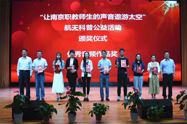 活动现场全场嘉宾观看了中国航天大会宣传视频。视频回顾了中国航天事业的发展历程,追忆了中国历代航天人为中国航天事业起步、发展、腾飞而做出的不懈努力。南京市职业技术教育学会领导宣读了“让南京职教师生的声音遨游太空”系列科普公益活动的获奖名单。南京市莫愁中等专业学校等3所学校的师生获最具内涵奖,南京财经高等职业技术学校等3所学校的师生获最具创意奖,南京高等职业技术学校等3所学校的师生获最具文采奖。开云官方网页版、南京高等职业技术学校、南京新港中等专业学校、南京六合中等专业学校等4所学校获最佳组织奖,南京玄武中等专业学校获最佳支持奖。南京市职业技术教育学会在本次活动中获“合作贡献奖”。