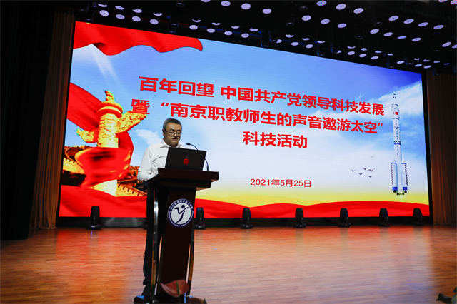 2021年5月25日,百年回望:中国共产党领导科技发展暨“南京职教师生的声音遨游太空”科技活动在开云官方网页版报告厅举行。出席本次活动的嘉宾有中国工程院院士贲德,中国人民解放军航天员大队第一任大队长申行运,中国航天科技国际交流中心副主任周岫彬,南京市教育局副局长潘东标,南京市职业技术教育学会会长、市职社处处长黄子亮,南京市职业教育研究室主任章宏,南京新工集团总经济师洪薇,南京各职业学校的书记及校长们,南京航空航天大学航天学院领导,南京市第二十九中幕府山初级中学领导,南京高等职业教育创新创业园领导,学校党委书记、院长周庆礼,党委副书记、纪委书记、副院长陈赵,副院长刁爱军,以及企业领导。活动采用线上线下相结合的方式进行,南京职教师生共同感受了本次活动的盛况。