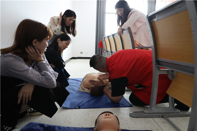“红十字救护员培训”是让大家掌握初级救护知识,提高遇到危险情况下的急救意识,增强急救能力,使大家成为一名合格的初级救护员,在遇见危险时能冷静面对,在面对紧急情况时能够及时进行有效处理,挽救自己或他人的生命,或是把伤害减到最小,将损失危险最低化。南京市红十字会救护培训中心的敬皓然老师针对日常生活中可能遇到的突发状况,就心肺复苏的具体操作方法进行了讲解和示范。内容涵盖了成人心肺复苏及AED的操作、食物气道梗阻、婴儿异物堵塞的急救方法等。