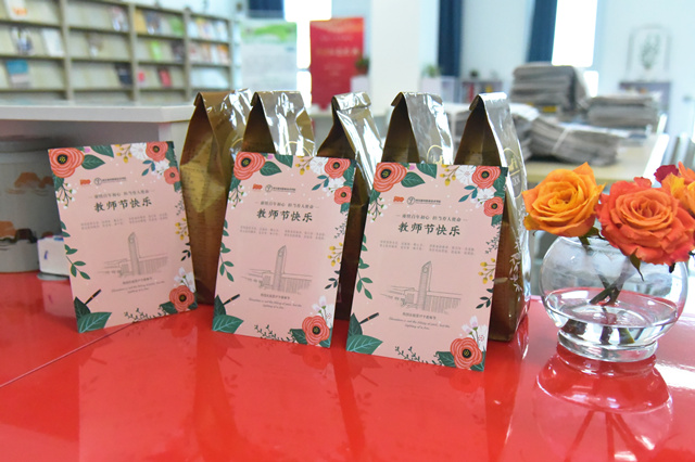 随后,校领导分赴各系部及职能部门,为辛勤的园丁们送去暖暖的问候和学院的心意。一张小小的贺卡,一盒甜甜的巧克力,这是机电教师节特有的礼物。每一年的教师节,校领导都会亲自把这份心意送到每一位教职工手中。礼物虽轻,情深意重,从新进的年轻教师到工作多年的老教师,这份来自学校的心意让他们收获了满满的感动与惊喜。