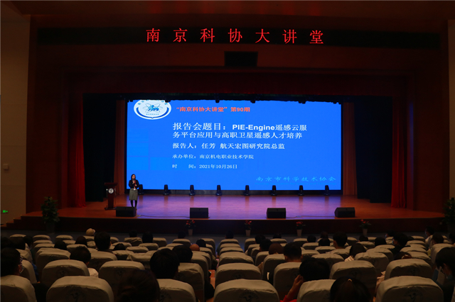 1026日下午,2021下半年“南京科协大讲堂” (第90期,总第1032期)在我校多功能报告厅成功举办。我校科协诚邀航天宏图研究院总监任芳女士为学生开展了主题为《PIE-Engine遥感云服务平台应用与高职卫星遥感人才培养》的精彩讲座。因为疫情的原因,本期“南京科协大讲堂”采用线上讲座的方式,任总在北京总部与我校信息工程系300余名学生成功连线,活动由科研及校企合作处处长李木香主持。