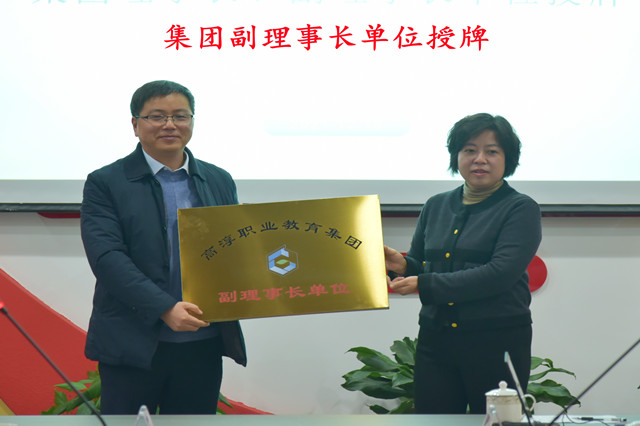 会上高淳区教育局副局长吕明霞、开云官方网页版党委副书记陈赵共同为高淳职业教育集团揭牌。吕明霞为集团理事长、副理事长单位授牌。