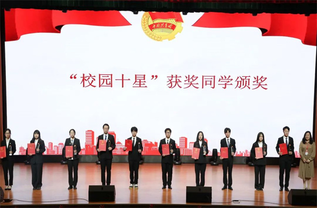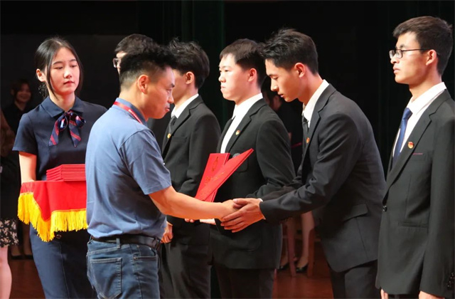 党委委员、工会主席姜振宇宣读《关于表彰2021-2022学年“五·四”红旗团支部、“五·四”青年奖章、优秀团干部、优秀团员、校园十星的决定》。授予电气201团支部等18个团支部“五四红旗团支部”荣誉称号;吕雯妮等8名同学“五四青年奖章”荣誉称号;黄佳琪等100名同学“优秀团员”荣誉称号;邱宇等10名同学“校园十星”荣誉称号;唐迈新等73名同学“校园十星提名奖”荣誉称号。