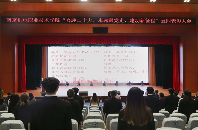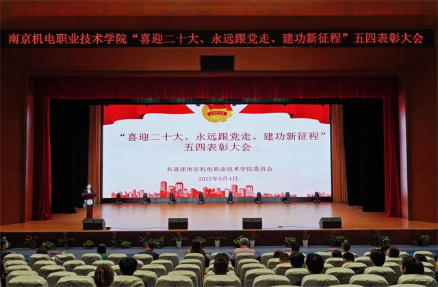 为表彰先进、树立典型,在建团百年之际充分发挥先进典型示范引领作用,进一步组织动员全校团组织和广大团员、团干部在实践中展现青春担当,以实际行动迎接党的二十大胜利召开,我校团委于2022年5月4日在星梦馆多功能厅召开“喜迎二十大、永远跟党走、建功新征程”五四表彰大会。学院领导、学工处领导、各职能处室领导、各系党支部书记、团总支书记、辅导员代表、获奖集体和学生代表出席了本次会议。会议由团委老师金慧敏主持。