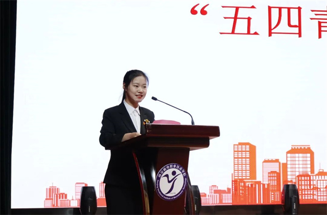 “五四青年奖章”获奖代表潘婷同学向在场的同学们分享了她作为学生干部的经历,她表示,作为新时代的团员青年,应当冲锋在前、担当作为,坚持“党有号召,团有行动”的光荣传统,展现出党的助手和后备军应有的时代风貌。