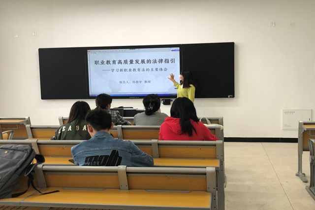 老师们纷纷表示,新职业教育法为职业教育的春天带来了希望和憧憬。作为从事职业教育的教师,必须依法执教,在教学过程中,坚持和维护教育法规。新职业教育法为解决现有的职业教育遇到的一系列难题扫除了法制上、政策上、社会地位上、思想观念上的障碍,我们身为职教人更应该不辱使命推动职业教育乘势而上,提升学生的幸福感、成就感和获得感。