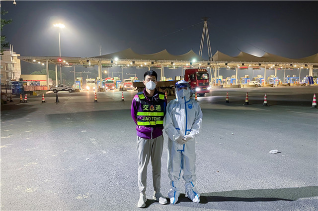 学校两名优秀党员毛奇、薛刚同志接到上级通知,要求于5月17日至6月6日期间前往南京市二桥高速收费卡口参加为期21天的疫情防控支援任务。接到通知后,两名同志克服困难立即前去支援,主要负责南京市二桥高速收费卡口的检查,一旦发现有中高风险行程史车辆和人员立即进行闭环管理,按照相关防疫要求引导车辆行驶至沪宁高速卡口,同时负责在高速卡口查验货车驾驶员及同行人员的健康码、行程码与核酸检测报告等信息,引导需核酸检测人员到指定地点进行核酸检测。