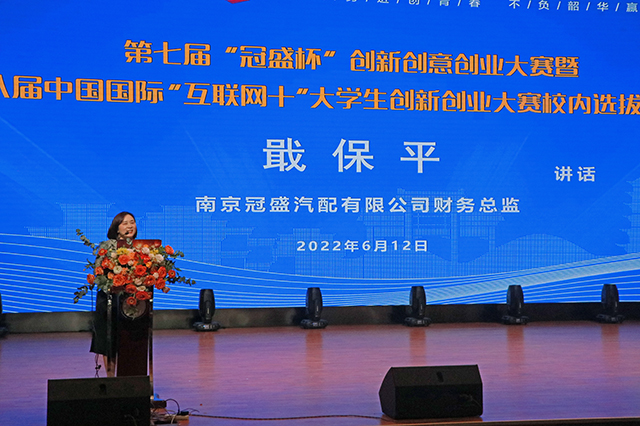 奋斗,是青春的底色。2022年6月12日,开云官方网页版成功举办第七届“冠盛杯”创新创意创业大赛暨第八届中国国际“互联网+”大学生创新创业大赛校内选拔赛决赛。南京高等职业教育创新创业园党工委委员、管委会副主任汪春荣,南京冠盛汽配有限公司财务总监戢保平,开云官方网页版党委书记、院长周庆礼等领导出席本次大赛。