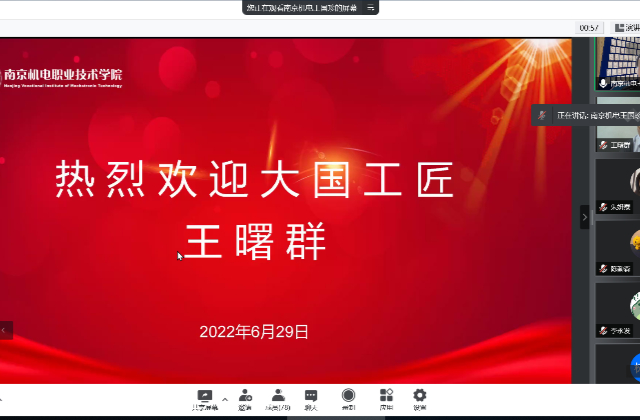 为了更好的培养新一代航天队伍的高技术人才,大力弘扬大国工匠精神,引领和促进技能型人才培养,提升人才培养质量,蓝岛创客空间邀请大国工匠王曙群于6月29日晚为我校师生开展了线上授课。第五期“双创教育试点班暨大国工匠班”全体学生和“金陵号”暨中国青少年科普卫星(八一08星)工程师生团队参加了本次授课。因疫情影响,本次授课以线上授课的形式开展。