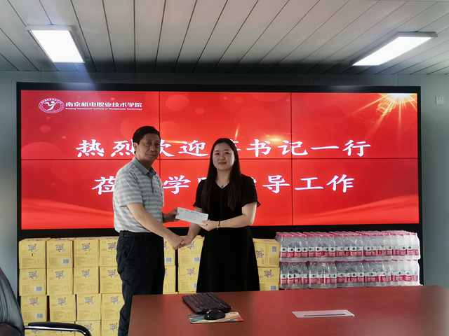 为保障高温天气下教职工的身体健康,增强职工归属感和幸福感,7月19日上午,南京机电产业集团纪委书记蒋斌一行向炎炎夏日还坚守在岗位的学校基层职工送上“夏日里的清凉”。学校党委委员、工会主席姜振宇,工会副主席张清松,学工处、后勤、建设办公室值守人员接受了集团的慰问。