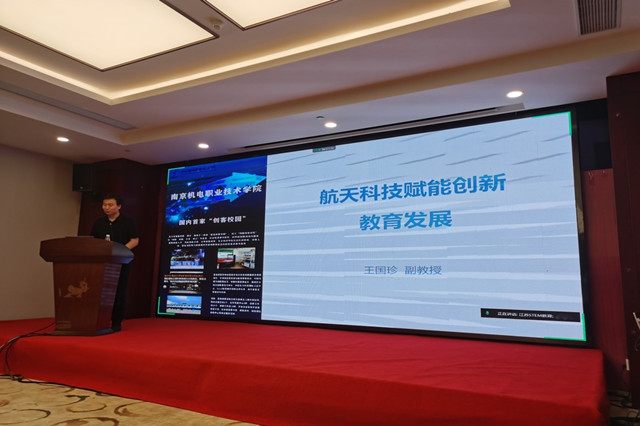我院蓝岛创客中心主任王国珍副教授带来了《航天科技赋能创新教育发展》主题报告,分别从缘起----面向职业教育的“54333”创客教育体系、两弹一星到航天大国、中国航天需要什么样的人才等,到成长----科普卫星载荷研制、航天遥感技术工程师联合培养班、让南京职教的声音遨游太空、大国工匠进校园及太原号科普卫星成功发射,以及展望----航天技术创新型人才能力素质、航天产业学院等介绍学校推广航天科技为中国职业教育培养科技创新人才思路、途径和成效。