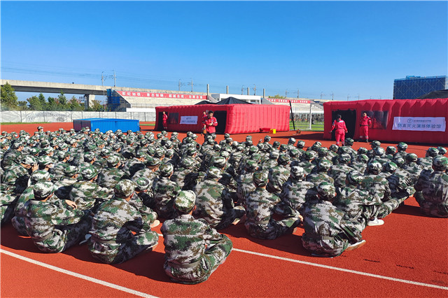 为进一步增强广大师生的消防安全意识和逃生自救能力,提升学院消防安全管理水平,开云官方网页版人武部以新生军训为契机,邀请中志协救援队,为2000余名正在接受军训的21级学生开展了新学期消防安全开学第一课。