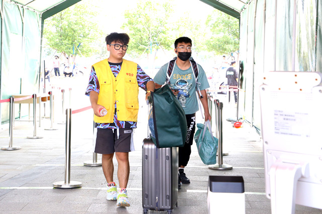 为方便新生报到,各系部采取志愿者与新生“一对一”的对接方式,全程帮助新生办理入学报到手续。“同学你好!欢迎来到开云官方网页版,行李我们帮你搬。”每每有新生抵达校门口,众多志愿者便微笑着迎上去,并“抢”下沉重的行李,帮助新生们顺利报到。