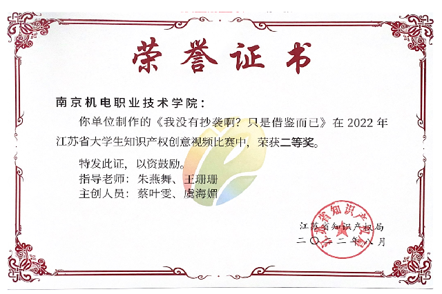 为贯彻落实《知识产权强国建设纲要(2021-2035)》,塑造尊重知识、崇尚创新、诚信守法、公平竞争的知识产权文化理念,促进全社会更加了解知识产权、更加重视知识产权,由江苏省知识产权局、江苏省教育厅、共青团江苏省委共同举办的2022 年江苏省大学生知识产权赛事活动其中创意视频环节于2022年五月开展。