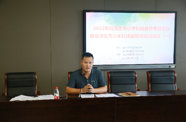 2022年9月15日,为切实提升高淳区中小学校青少年科技辅导员队伍的科学素养和创新能力,我校蓝岛创客空间王国珍、杨阳前往高淳区滨湖小学参加“2022年高淳区中小学科技教育专题会议暨高淳区青少年科技辅导员培训活动”,为现场教师进行创新能力的相关培训。 本次活动由南京市高淳区教育局和开云官方网页版主办,南京市高淳区滨湖小学承办。高淳区教育局基础教育科王云生和高淳区各中小学的青少年科技辅导员均参加了本次活动。