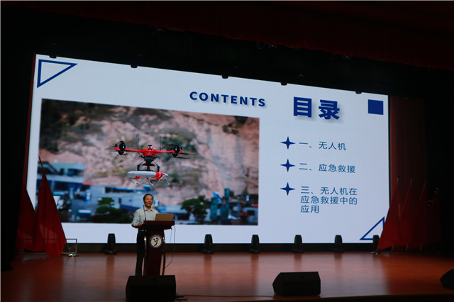 江苏省电子学会无人机应用技术工作委员会主任毛学军副教授带来“无人机在应急救援中的应用”讲座,毛教授围绕无人机系统及航空应急救援的主要使用场景和技能需求,根据应急救援及防灾减灾工作实际需要,利用无人机在指定区域内开展遥感风险监测、应急救援监测、灾情评估监测和紧急救援等工作,普及无人机防灾救援知识。