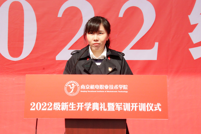 信息工程系2022级移动商务2班的孟颖同学作为新生代表发言,将会牢记师友的热切期盼,扬起理想之帆,趁着美好时光,播种希望的种子,放飞新梦想,踏上新征程,创造新成绩,在南京机电的这片有爱、有趣、有情怀的热土上,做“眼里有光、心中有爱、脚下有路、手里有活”的机电青年,共同铸造新的辉煌!时刻牢记“请党放心,强国有我”的铮铮誓言,以实际行动迎接党的二十大胜利召开。