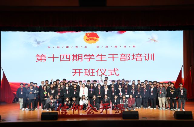 为进一步提高我校学生干部队伍整体素质,锻炼和塑造一支具有良好综合素质能力的学生干部队伍,充分发挥学生干部在大学生思想政治教育中的桥梁和纽带作用,提高学生干部的政治素质、理论水平和业务能力。2022年10月25日,由校团委主办的第十四期学生干部培训班开班仪式在青春剧场举行。