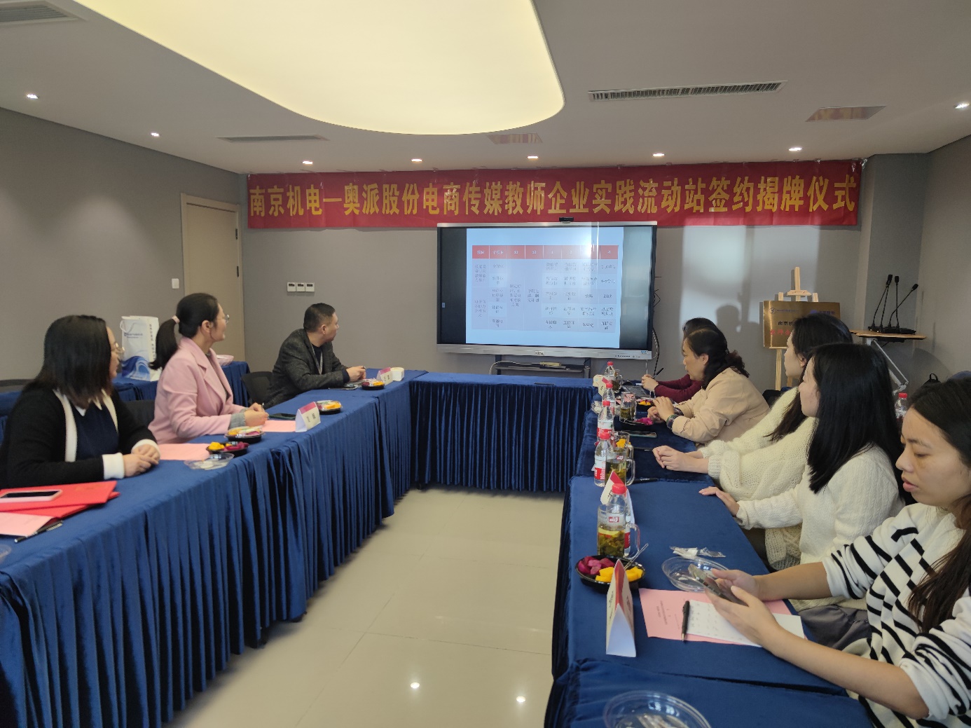 11月10日上午我校党委委员、副院长刁爱军,科研及校企合作处处长李木香、信息工程系主任王玮、信息工程系副主任刘娴及进站教师一行赴南京奥派信息产业股份公司与董事长徐林海、常务副总裁董清其、产品中心总监王波、产品中心副总监刘飒等企业领导共同见证“南京机电-奥派股份电商传媒教师企业实践流动站”正式成立,为着力打造高水平"双师型"队伍、提升我校教师专业实践能力提供了有力的平台保障。