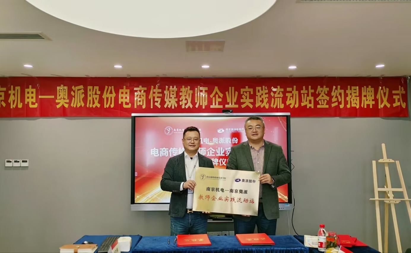 刁爱军介绍了我校坚定不移推动校企合作、产教融合的重要举措和丰硕成果。他强调,教师企业实践流动站有助于促进教师立足行业前沿,贴近生产实际,培养实践能力;感悟企业文化,学习工匠精神,激发创新活力;学习管理经验,创新培养模式,推动教学改革,提高育人实效。“南京机电-奥派股份电商传媒教师企业实践流动站”是我校信息工程系教师与企业导师相互交流的重要平台,将进一步推进产学研成果转化,协同培养更多高质量技术技能人才。