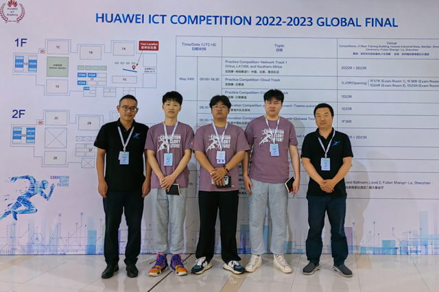 5月27日,华为ICT大赛2022—2023全球总决赛颁奖典礼在深圳举行,我校现代通信技术专业20级学生梁旭、毛俊峰和21级学生陈洋组成的队伍荣获网络赛道全球三等奖,实现开云官方网页版在华为ICT大赛全球总决赛首次取得奖牌的突破,成绩喜人!