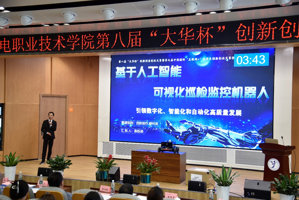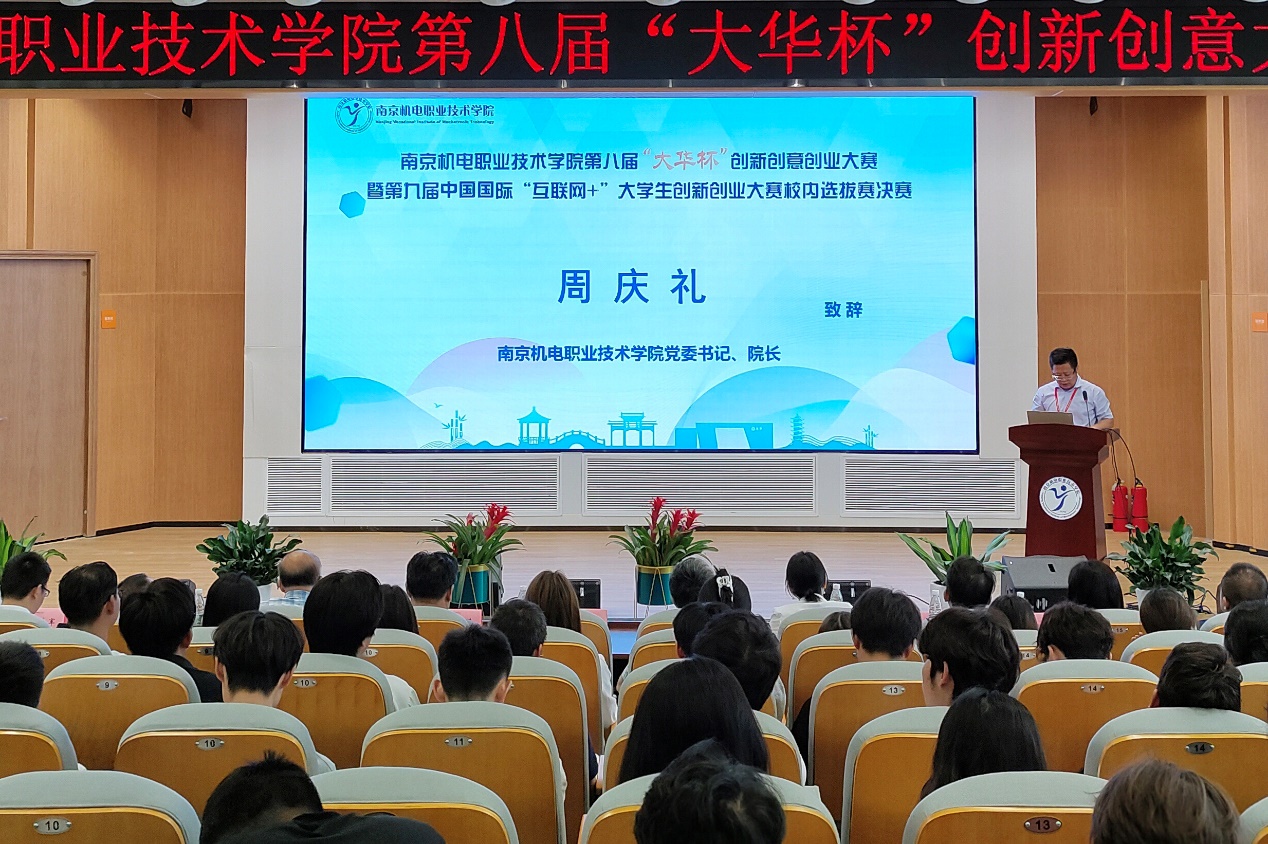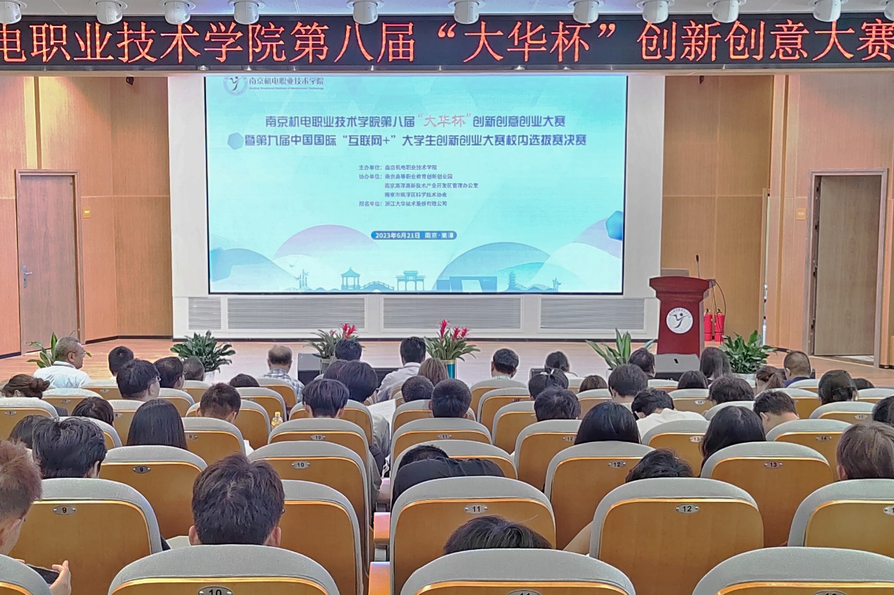 基于人工智能技术(AI)驱动的大语言模型在智能前端设备上的应用、基于人工智能可视化巡检监控机器人、智能E柜-校园生活保卫柜 …… 2023年6月21日,学校第八届“大华杯”创新创意创业大赛暨第九届中国国际“互联网+”大学生创新创业大赛校内选拔赛决赛在乐学楼102报告厅和博学楼410智慧教室举行。浙江大华技术股份有限公司文教卫行业总监方鸣子,南京高等职业教育创新创业园党工委委员、管委会副主任汪春荣,学校党委书记、院长周庆礼,党委委员、副院长郭朝辉,党委委员、副院长刁爱军等领导出席本次大赛。全校400余师生观摩决赛。