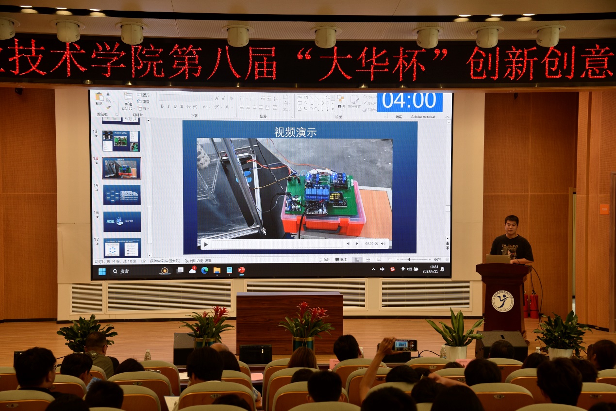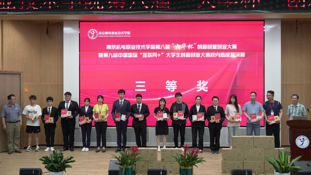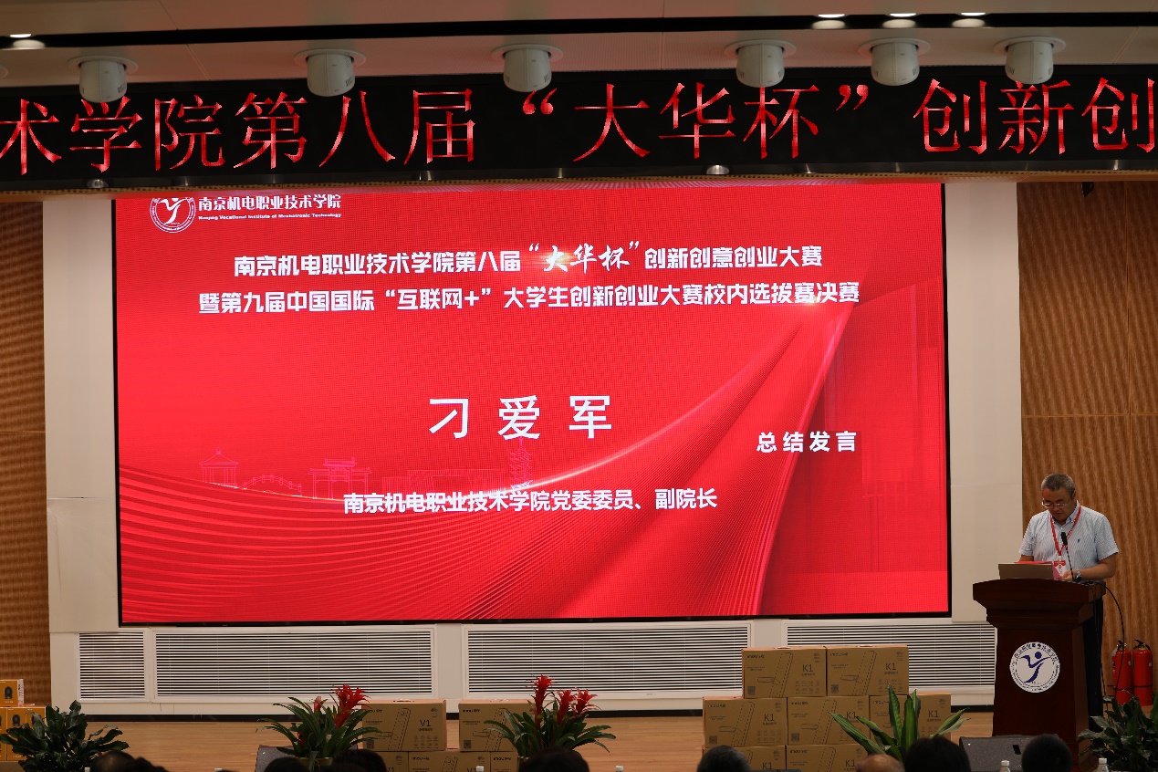 基于人工智能技术(AI)驱动的大语言模型在智能前端设备上的应用、基于人工智能可视化巡检监控机器人、智能E柜-校园生活保卫柜 …… 2023年6月21日,学校第八届“大华杯”创新创意创业大赛暨第九届中国国际“互联网+”大学生创新创业大赛校内选拔赛决赛在乐学楼102报告厅和博学楼410智慧教室举行。浙江大华技术股份有限公司文教卫行业总监方鸣子,南京高等职业教育创新创业园党工委委员、管委会副主任汪春荣,学校党委书记、院长周庆礼,党委委员、副院长郭朝辉,党委委员、副院长刁爱军等领导出席本次大赛。全校400余师生观摩决赛。