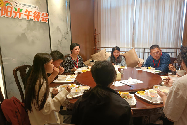 为深入贯彻落实党的二十大精神,推动发展型资助育人工作走深走实,做好受资助学生回访工作,学生工作处学生资助管理中心特推出“阳光午餐会”系列活动。活动邀请获得奖助贷的学生和学校老师共进午餐,切实为广大学生们解决实际问题,建立良好的沟通交流渠道。2023年11月2日,首期阳光午餐会在一粟堂3楼小包间举行,学生工作处处长张宝中、学生资助管理中心主任钱莉娇与6名学生代表共进午餐,共话成长。