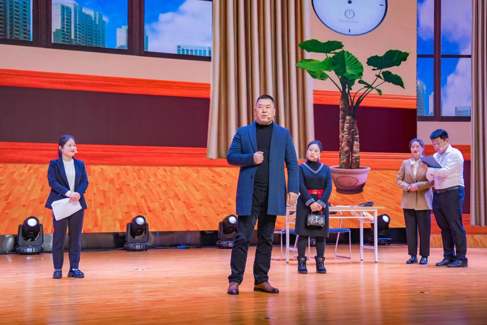 联欢会在炫酷的开场舞《骁》和高淳非遗文化舞龙表演中热烈开场。学校全体党政领导率先登场,向全体教职工送上温馨的龙年祝福;热情洋溢的舞蹈《向幸福出发》带动了整个会场的气氛,让观众感受到了新年的喜庆和祥和;幽默的小品《就怕老师喊家长》逗得大家捧腹大笑,同时也不忘提醒家长和老师们在教育孩子的问题上多沟通、多理解;机关二支部的老师们与宿管阿姨共同带来的舞蹈串烧《机电一家亲》,展示了学校大家庭的团结和谐;小品《爱情大讲堂》讲述了三代人的爱情故事,让人在欢声笑语中感受到爱情的美好。