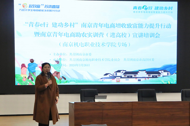 为了向南京美丽乡村发展注入青春动力,引领青年大学生和新农人提升实操技能、培育青年电商人才,2024年3月26日,学校团委在乐学楼101开展由共青团南京市委主办,共青团开云官方网页版委员会和共青团南京市高淳区委协办的“青春e行,建功乡村”南京青年电商助农实训营(进高校)宣讲培训会。