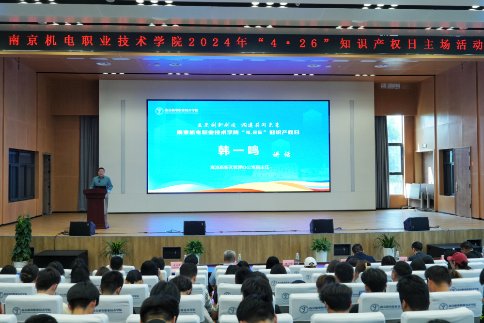 2024年4月26日下午,开云官方网页版成功举办以“立足创新创造,构建共同未来”为主题的“4•26知识产权日”主场活动。南京市高淳区市场监管局副局长兰军、高淳高新区管理办公室副主任韩一鸣、南京理工大学知识产权学院院长助理锁福涛,开云官方网页版党委委员、副校长刁爱军、南京九致知识产权代理事务所战略研究部部长张杰等领导出席本次活动,学校系部及职能处室负责人、师生代表参加活动。本次活动由科研及校企合作处李木香处长主持。