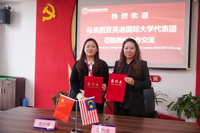我校与马来西亚英迪国际大学签署了合作协议,双方就具体的合作专业、人才培养模式、教学标准及教学资源建设进行了深入的交流,并围绕“在校师生的学历提升与短期交流游学研学项目”进行了具体洽谈。