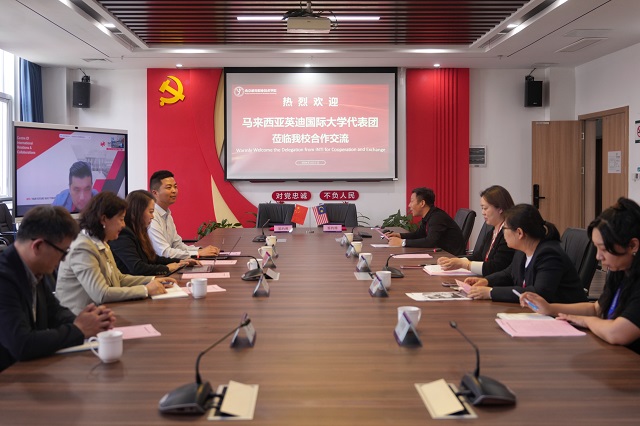 马来西亚英迪国际大学助理副校长吴康馼博士对我校的热情接待表示感谢,对我校的发展进步以及近年来所取得的成绩表示高度赞赏,详细介绍了马来西亚英迪国际大学的办学历史、发展状况并就目前学校在国际交流与合作方面的办学情况做了详细的介绍。希望双方今后的合作可以不断深化,在学术交流、师生交流等方面开展长期的合作。