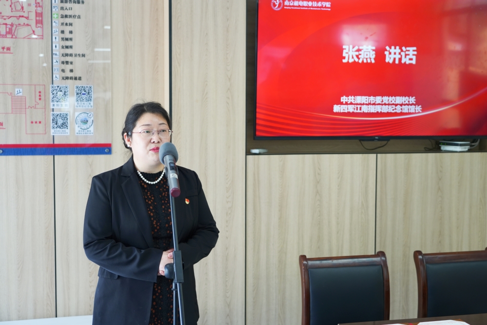 张燕对学校一行的到来表示热烈欢迎,她详细介绍了新四军江南指挥部纪念馆的建馆背景和发展历程。她表示,此次馆校合作共建,将遵循习近平总书记的重要讲话精神,把红色资源利用好,把红色传统发扬好,把红色基因传承好。希望双方加强互动交流,推动合作共赢,促进创新发展,通过深挖红色教育基地的育人功能,将革命传统教育和爱国主义教育在更为广阔的领域传播开来。