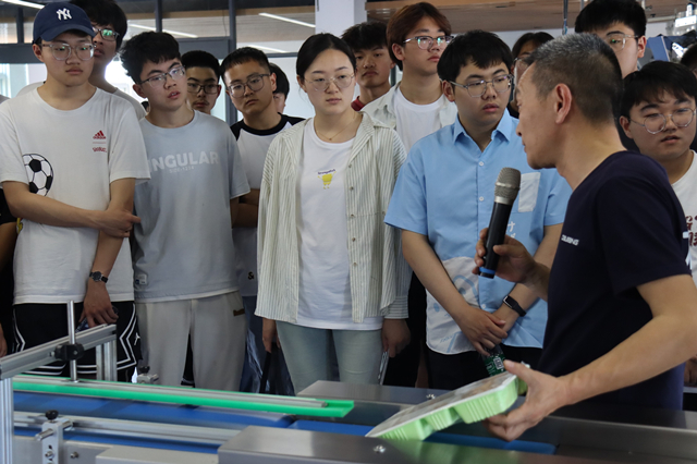 研学实践团一行首先前往江苏大江智能装备有限公司,实地体验公司的生产环节,聆听工作人员讲解生产流程、生产工艺、售后保障等业务知识,感受理论知识与实际生产之间的紧密联系,深刻感受到了新质生产力的创新性和变革性。