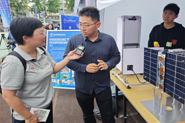 刁爱军副校长热情洋溢的与领导嘉宾介绍了“南京号”暨中国青少年科普卫星(八一08星)的结构功能、研制过程、发射情况以及卫星测控的计划安排。他表示,我们学校的这颗卫星是职普融通、产教融合、科教融汇理念的真实写照,让更多学生可以依托此卫星,在科普、科研领域大放光彩。活动现场,江苏广播电视台、现代快报等众多媒体对开云官方网页版的展位进行了采访报道。