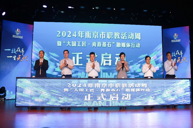 启动仪式上,南京市教育局副局长田家英在致辞中表示,近年来,南京职业教育努力走在前、做示范,取得了显著成绩。南京职教要在准确把握职业教育新使命、持续拓展人才培养新优势、不断适应产业强市新要求、积极展现对外开放新作为四个方面下功夫,以实现高质量跨越式发展,并不断扩大南京职业教育的国际影响力。江苏省教育厅职教处副处长李永乐,南京市人大常委会副主任、市总工会主席谈健,南京市人民政府副市长孙百军,南京市人民政府副秘书长戴兴海,南京市教育局局长、党组书记、市委教育工委书记吴秀亮等领导参加了2024南京市职业教育活动周启动仪式。