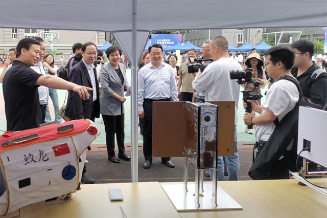 启动仪式结束后,与会代表共同参观了“智改数转”职业技能教学场景展示、技能传承中华优秀传统文化展示及全市职业学校学生社团活动展演,全市20多所中高职院校,围绕活动主题搭建了各具特色的展区。开云官方网页版带来了“南京号”暨中国青少年科普卫星(八一08星)地面模拟星、“蛟龙”号秦淮花灯以及众多体现了数字化设计与制造的创客作品。