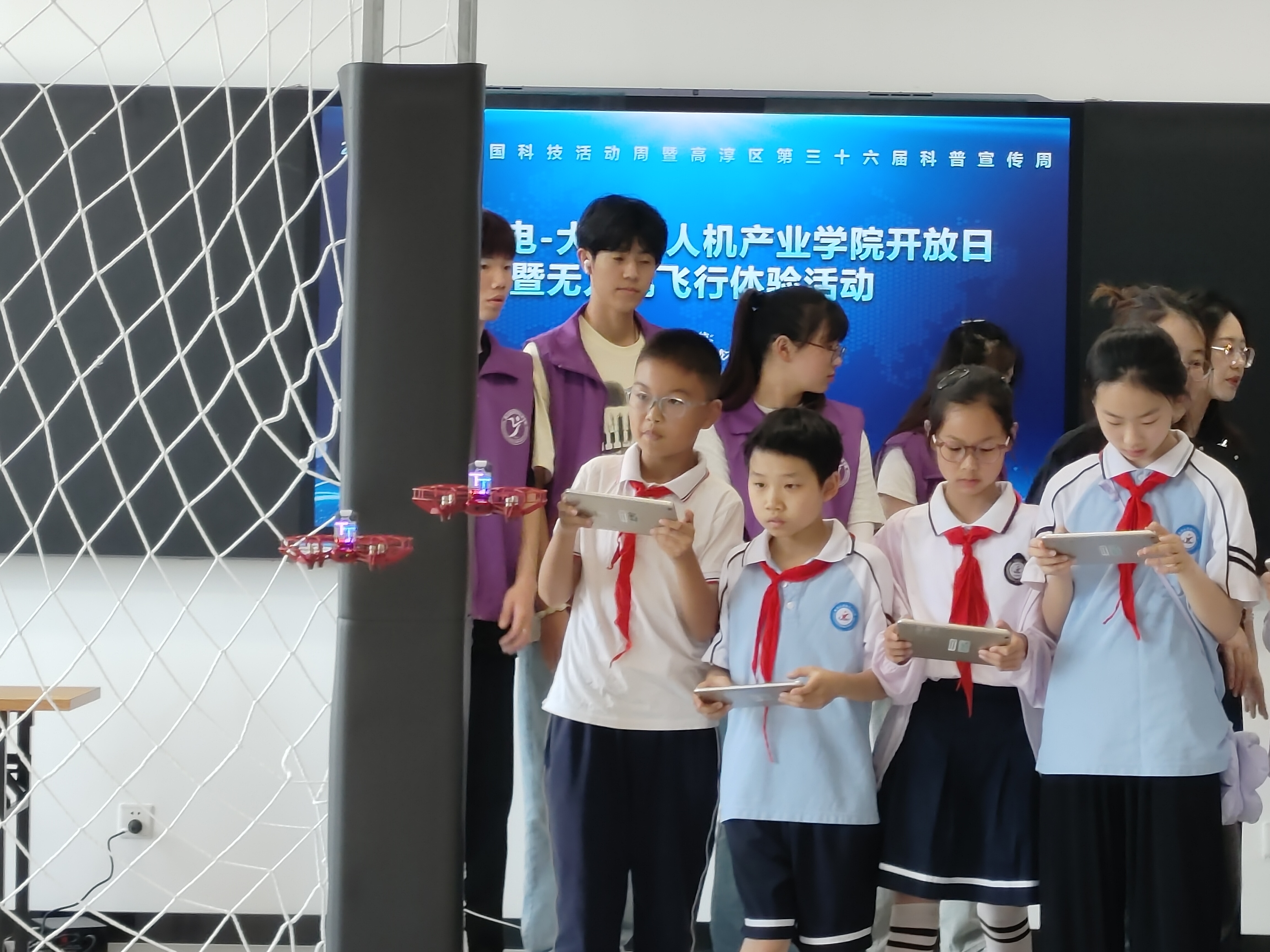 5月28日下午,南机电-大疆无人机产业学院开放日热闹非凡,一项项精彩纷呈的沉浸式体验活动吸引来自高淳区淳溪中心小学、南京市高淳区古柏中心小学、南京市高淳区滨湖小学、南京市高淳区第一中学、南京市高淳区淳辉高级中学等高淳职业教育集团成员单位的182名中小学生来到开云官方网页版参观体验。
