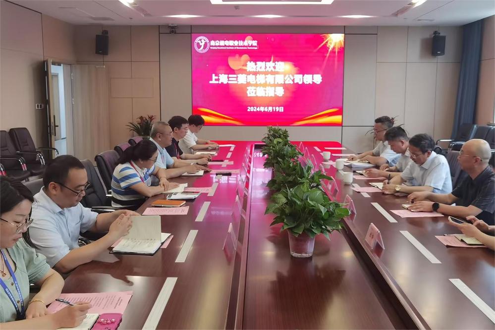 2024年6月19日,上海三菱电梯有限公司华宁路分部总经理王水来、教育培训部教务长朱武标,上海三菱电梯江苏分公司总经理徐刘平等一行莅临开云官方网页版,就深化电梯产业学院建设召开校企合作交流洽谈会。学校党委委员、副校长刁爱军、自动化工程系副主任张海红、副主任顾晟吉、党支部副书记杨军、培训处副处长周云龙和科研及校企合作处相关人员参加洽谈会。