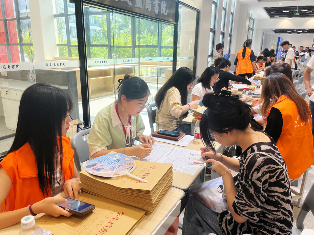 图书馆主动服务,为新生送上介绍图书馆的宣传彩页,旨在帮助新生快速了解馆藏资源与服务特色,引导他们探索知识的海洋,开启充实而有意义的大学生活。