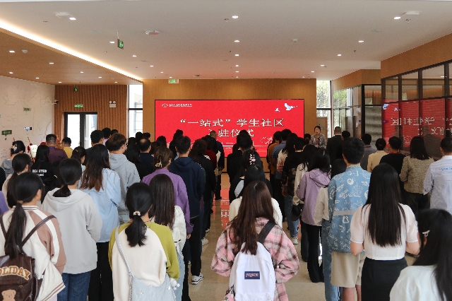 与会领导共同上前宣告“一站式”学生社区正式启航。“一站式”学生社区的启用,不仅标志着学生们将拥有一个更加便捷、全面的学习与生活平台,也象征着社区将为学生们提供更加贴心、高效的服务与支持。