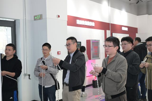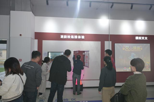 与会人员还前往学校安全应急教育体验中心,实地体验了VR模拟、触电、驾驶、挤压撞击、地震、模拟灭火、应急疏散、高空降落和应急救助等项目,作为学校安全应急教育体验中心建成后试运行的第一批体验人员,集团安全专家们纷纷赞赏了学校体验式安全教育方式。