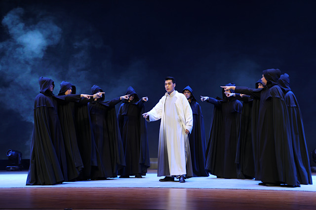 现场导赏环节精彩纷呈。主演邀请部分同学上台,通过体验“喂鸡”感受中国戏曲的“虚拟性”。在演员指导下,同学们无实物表演,却将“鸡飞狗跳”的热闹场面展现得活灵活现。还有同学化身剧中“黑衣人”,黑袍加身,沉浸式体验剧情,将开演前的气氛推向高潮。这样一次近距离接触传统文化、领略锡剧艺术魅力的独特审美体验,收获了现场师生的阵阵欢笑与热烈掌声。