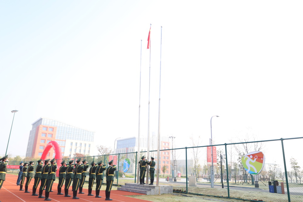 伴随着庄严的国歌声,国旗护卫队动作整齐划一,步伐矫健,气势如虹,五星红旗在全体师生的注目礼中缓缓升起。